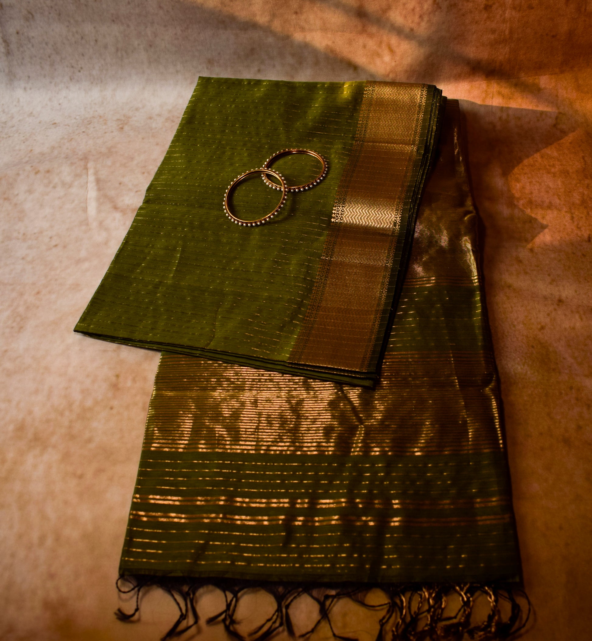 - Design: Traditional Maheshwari weave with fine Line zari work